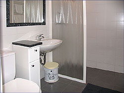 1 Dusche/WC, 1 Balkon mit Tisch und Stühlen mit Blick aufs Meer